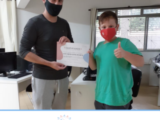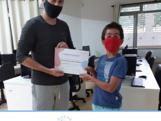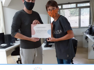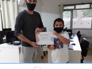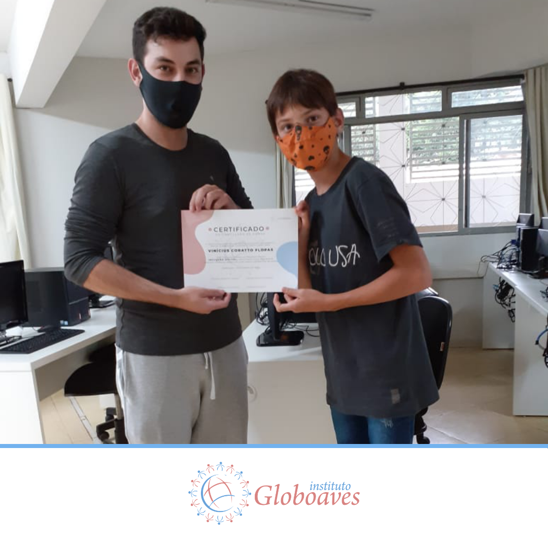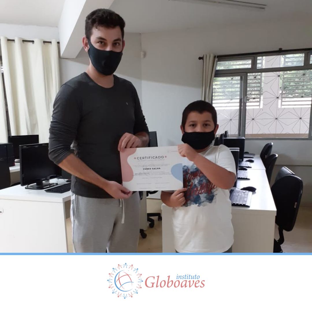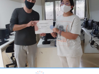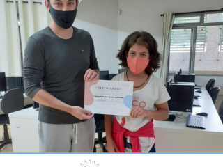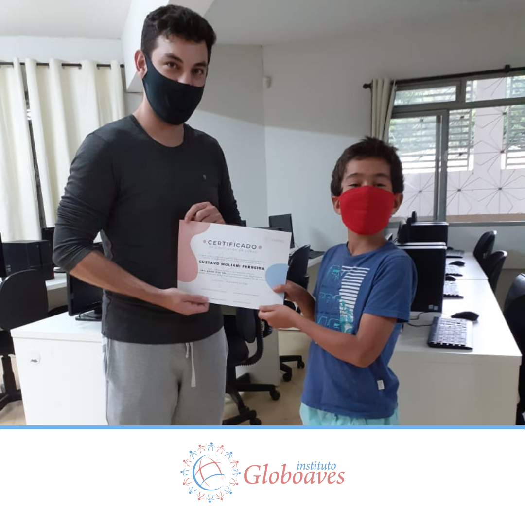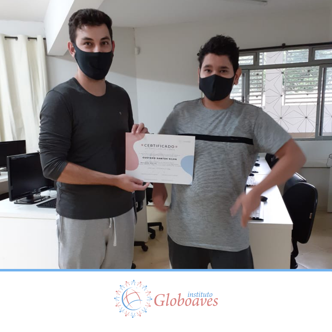 Em dezembro foi realizada a confraternização da turma de 2020 do Projeto Inclusão Digital, com entrega de certificados aos alunos, pelo professor Leandro Ramalho e a Coordenadora do Instituto Globoaves, Marcia Nogueira.